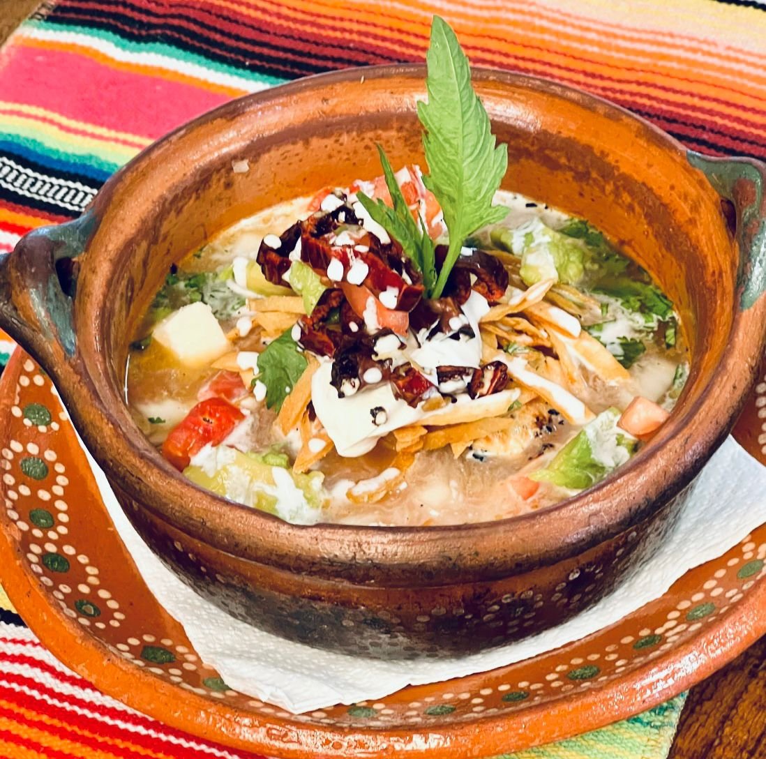 Comes with avocado, chicken, cilantro, crispy tortillas, epazote, Mexican cream, pasilla chili, and queso fresco.