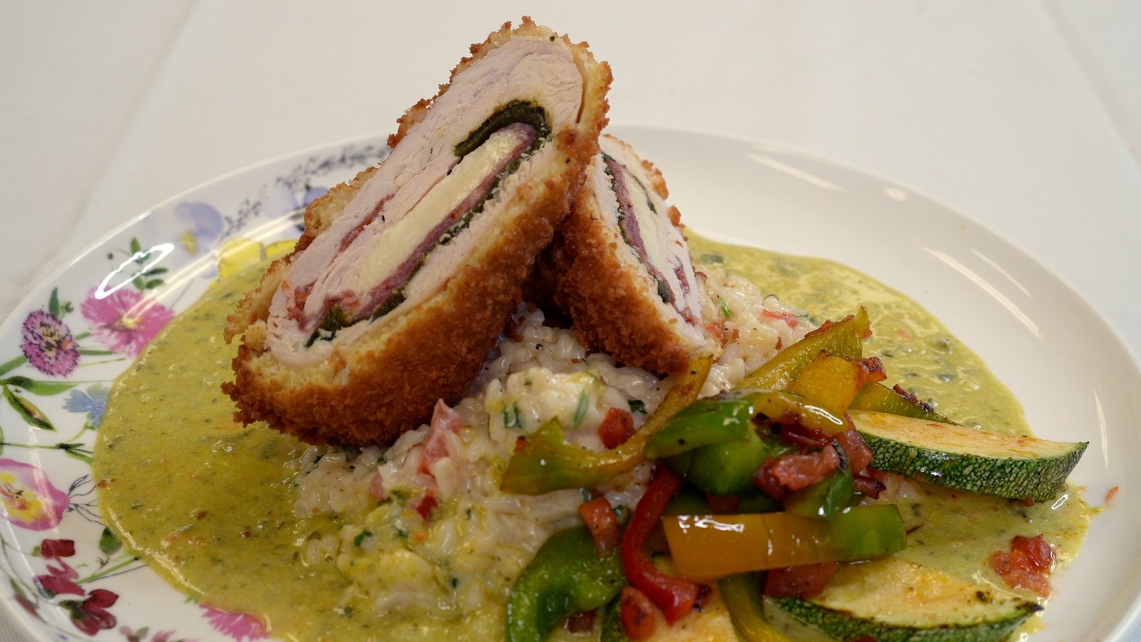 Grilled chicken breast with green peppers, onions, tomatoes, bacon, guajillo sauce, melted cheese served with rice, beans and your choice of tortillas.
