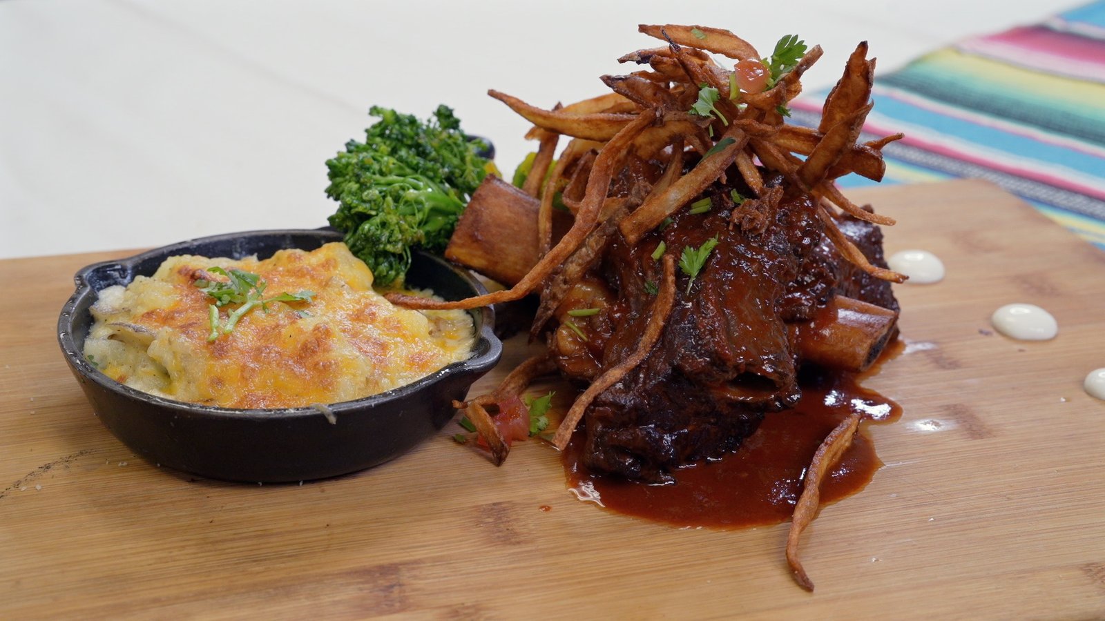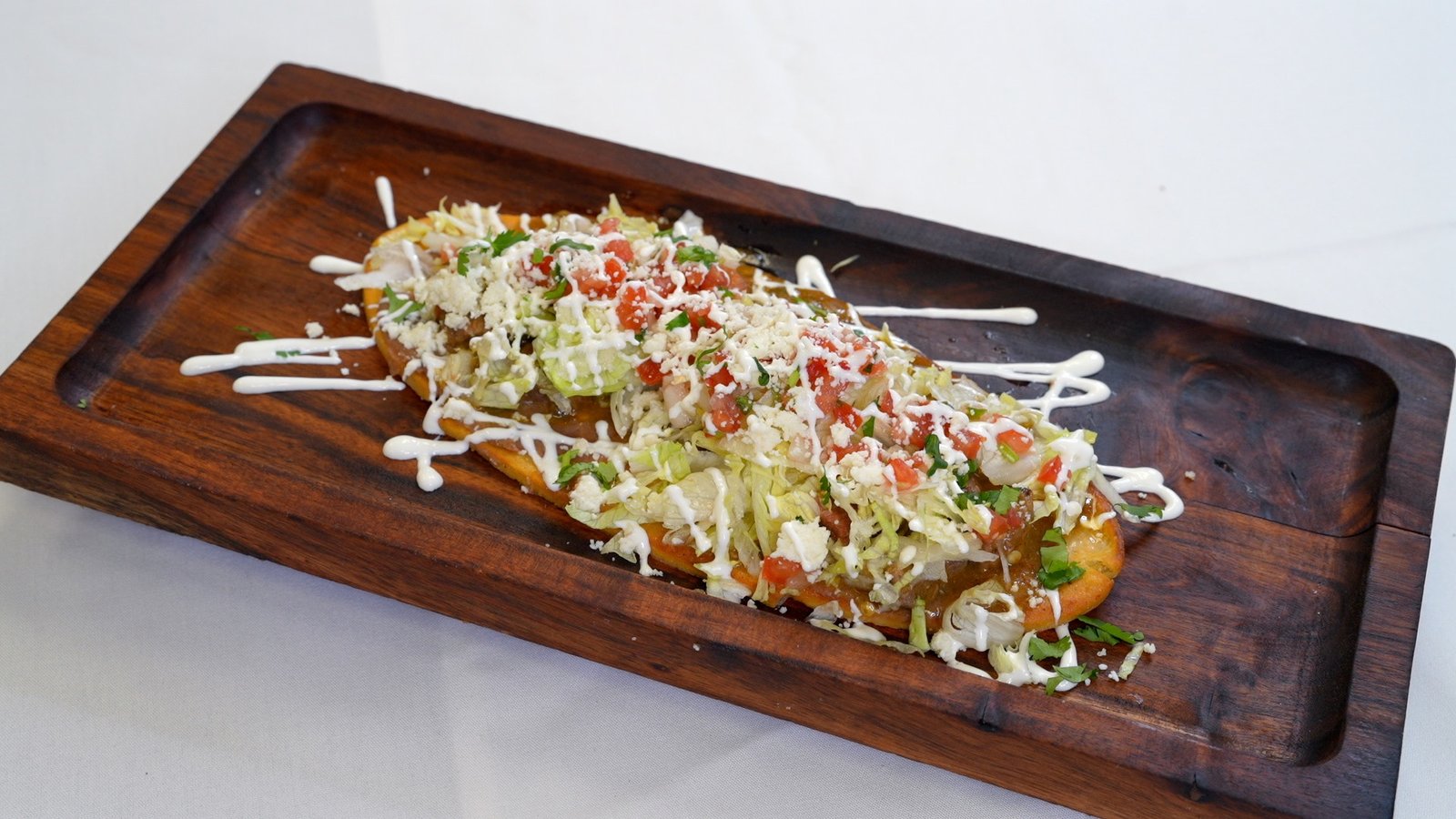 Corn masa stuffed with oaxaca cheese topped with nopales salad (cactus). Served with grilled tampiqueña